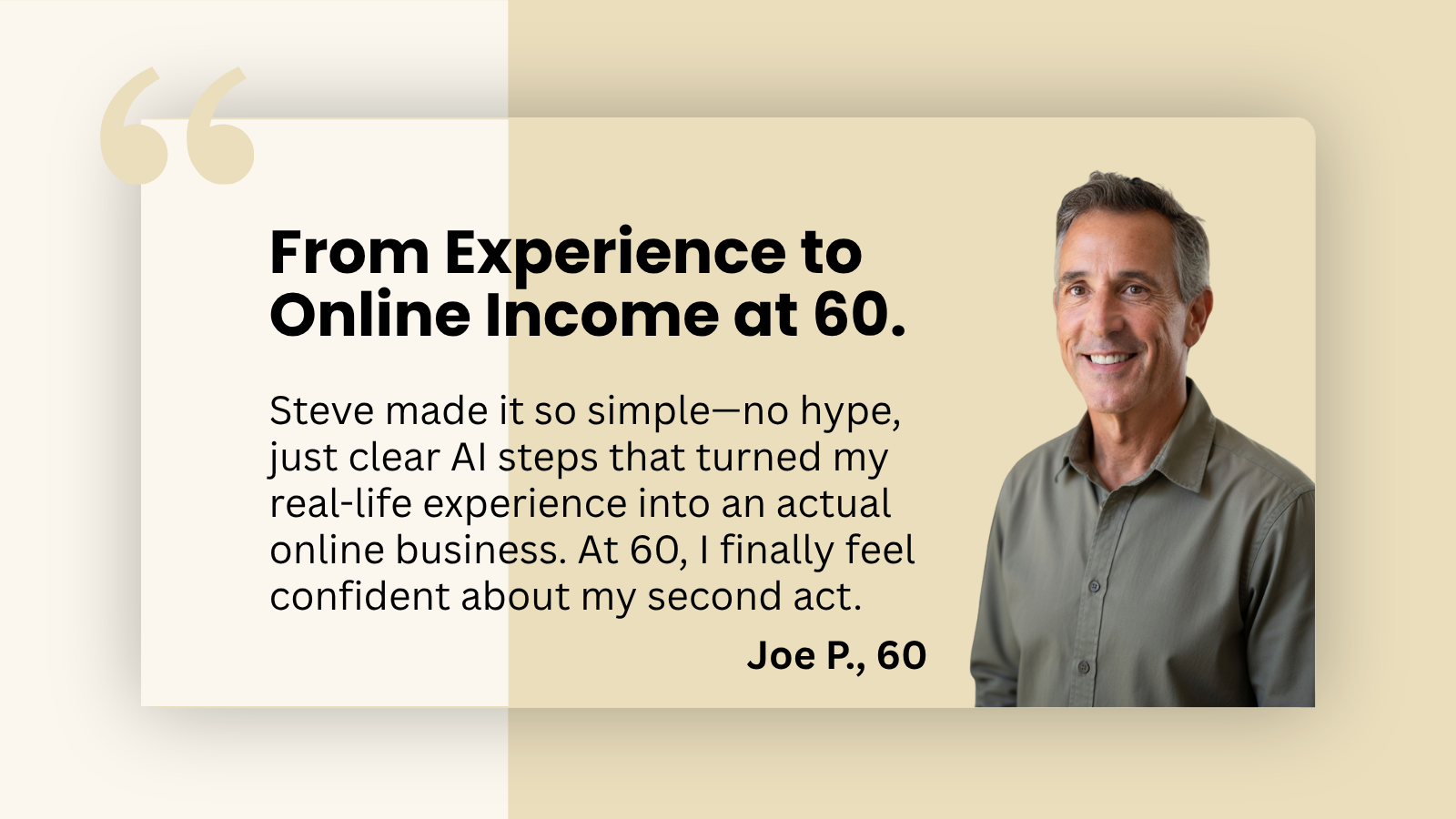 If you are over 50 and feel overwhelmed by all the online noise, I help you turn your skills, experience, and interests into a clear online business path. You can do it without hype, tech confusion, or pressure to do everything at once.